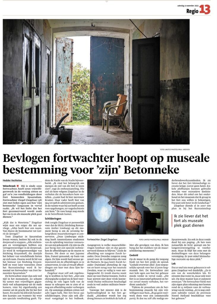 Nog steeds geen restauratie: Plannen Fort benoorden Spaarndam voldoen niet aan eisen (Haarlems Dagblad 1 november 2022)