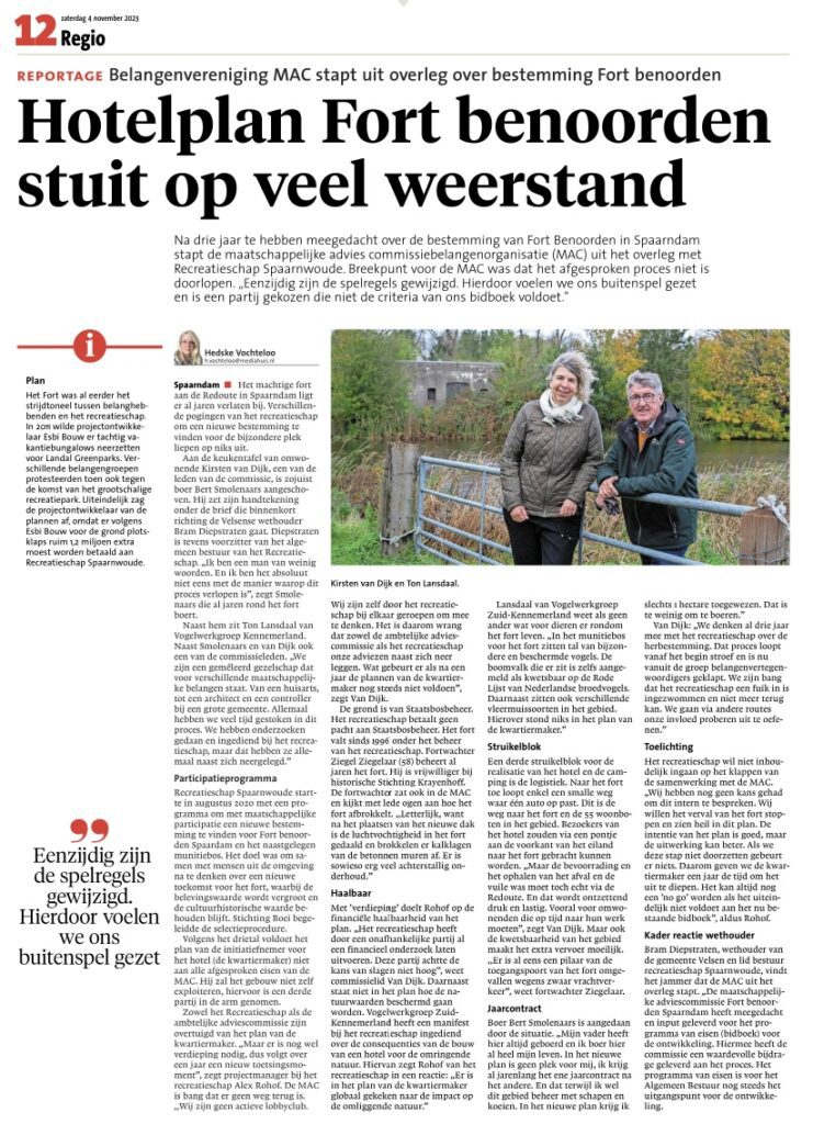 Wederom twee pagina’s over ontwikkelingen rond het Fort. Haarlems Dagblad 4 november. Wederom geen woord over onze eventuele doe-tuinen.