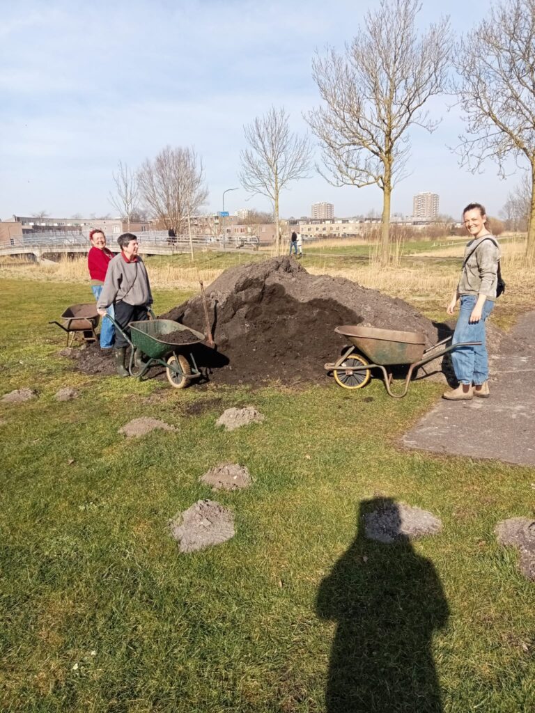 Maar liefst 28 kruiwagens aarde zijn op de Poelbroektuinen verwerkt om de Doe-tuinen die laag liggen en vaak onder water staan op te hogen. Wateroverlast was het grootste probleem vorig jaar, naast de naaktslakken die bij veel nattigheid horen. Veel tuinen hebben vorig seizoen echt ondergestaan. Nu door noeste arbeid wordt 2025 hopelijk een jaar met meer oogst en droge voeten.